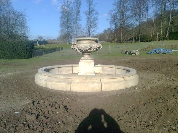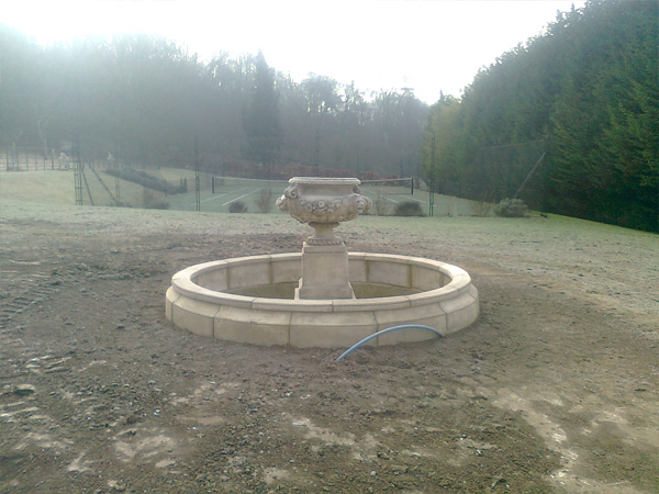 We purchased a large fountain with a circular surrounding pond, we asked Roo`s to install it. Richard took great care with this project and because a lot depended on the weather, worked at weekends if he had to. He and his team did the masonry work and his electrician did the lighting – he has a pool of tradesmen to call on. He then restored the garden which had diggers & dumpers all over it and left it exactly as he found it. The fountain looks very impressive, works perfectly, and my husband and I are extremely pleased.